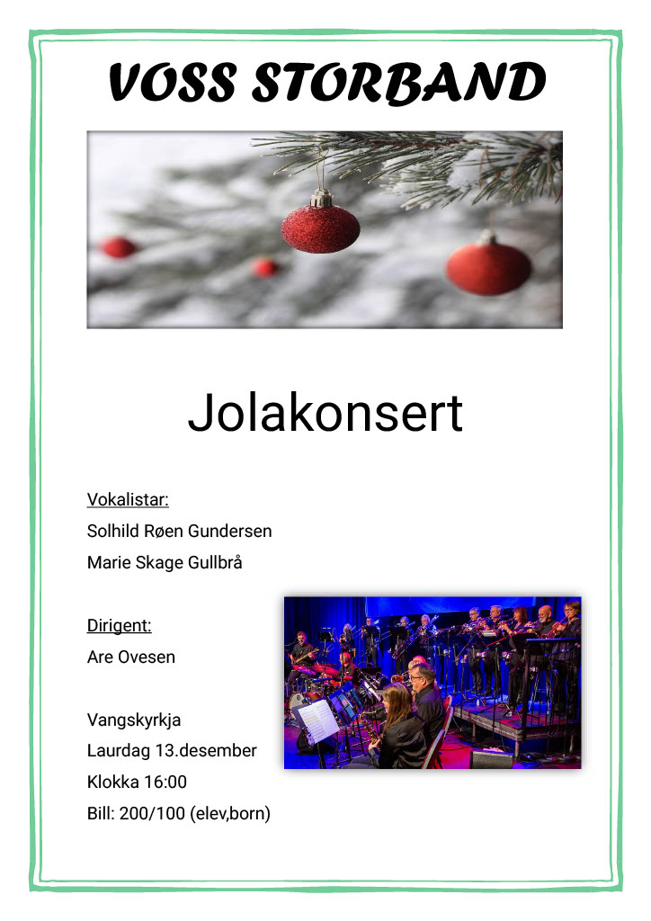 Her legg me ut informasjon om konsertar i kyrkjene våre på Voss. Me viser også til kalendaren vår, https://www.voss.kyrkja.no/Kalender, der konsertar me ikkje har fått plakatar for, men som er tidfesta ligg. Velkomne!