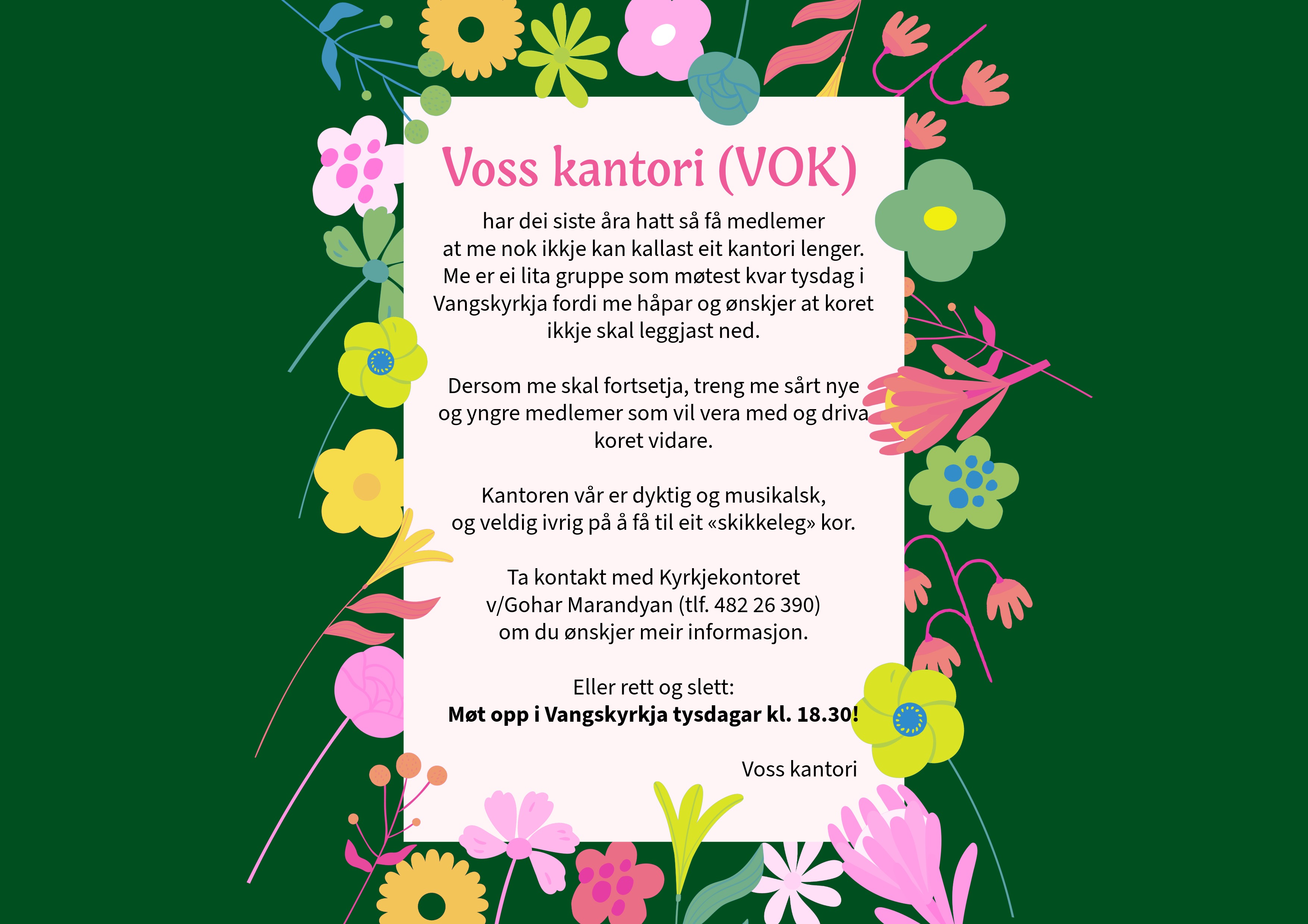 Her legg me ut informasjon om konsertar i kyrkjene våre på Voss. Me viser også til kalendaren vår, https://www.voss.kyrkja.no/Kalender , der konsertar me ikkje har fått plakatar for, men som er tidfesta ligg. Velkomne!
