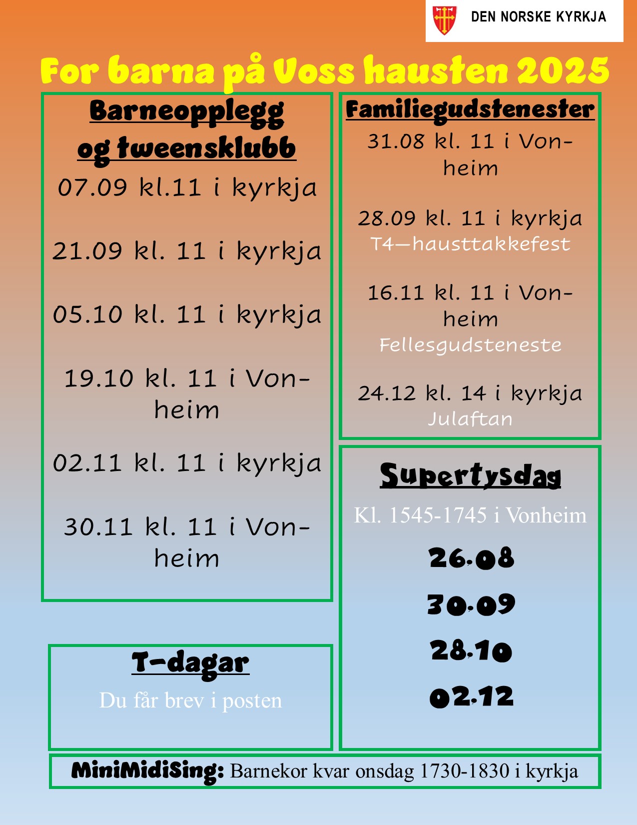 Her finn du ei oversikt over kyrkja sine tilbod til barna denne hausten.